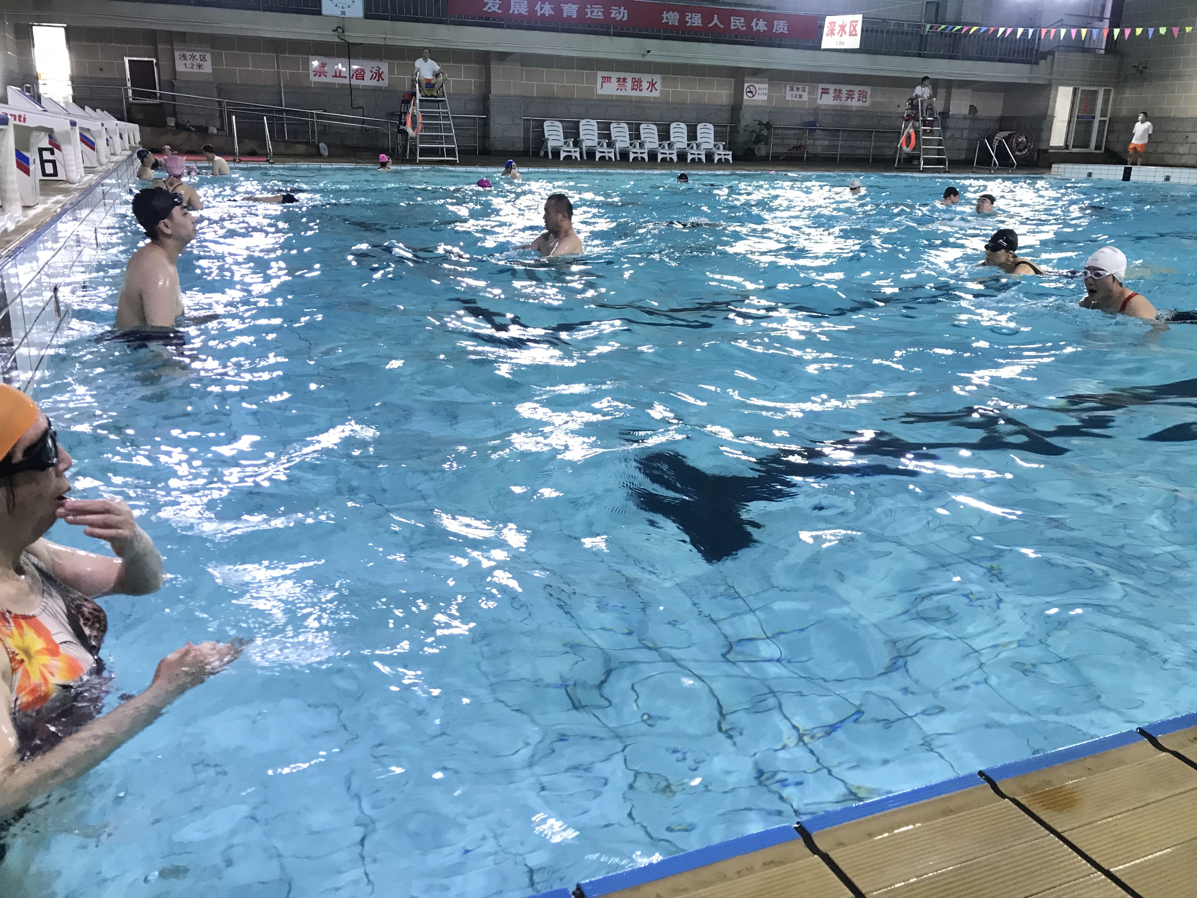 “三个多月没有游泳了,今天下水的时候,好像有点不大会游了,动作不自然,胸口也感觉闷。”在松江区游泳馆,市民毛女士表达了这样的困惑。其实,毛女士的困惑不是个案。“很长一段时间没有游泳,再次下水,身体确实会有些不适应。”松江游泳馆救生员沈兆聘说,这时候往往需要格外注意,“很长时间没有接触水,游泳动作会变形,肌肉到水里面也有可能会出现抽筋等症状,所以在岸上一定要做好热身。”