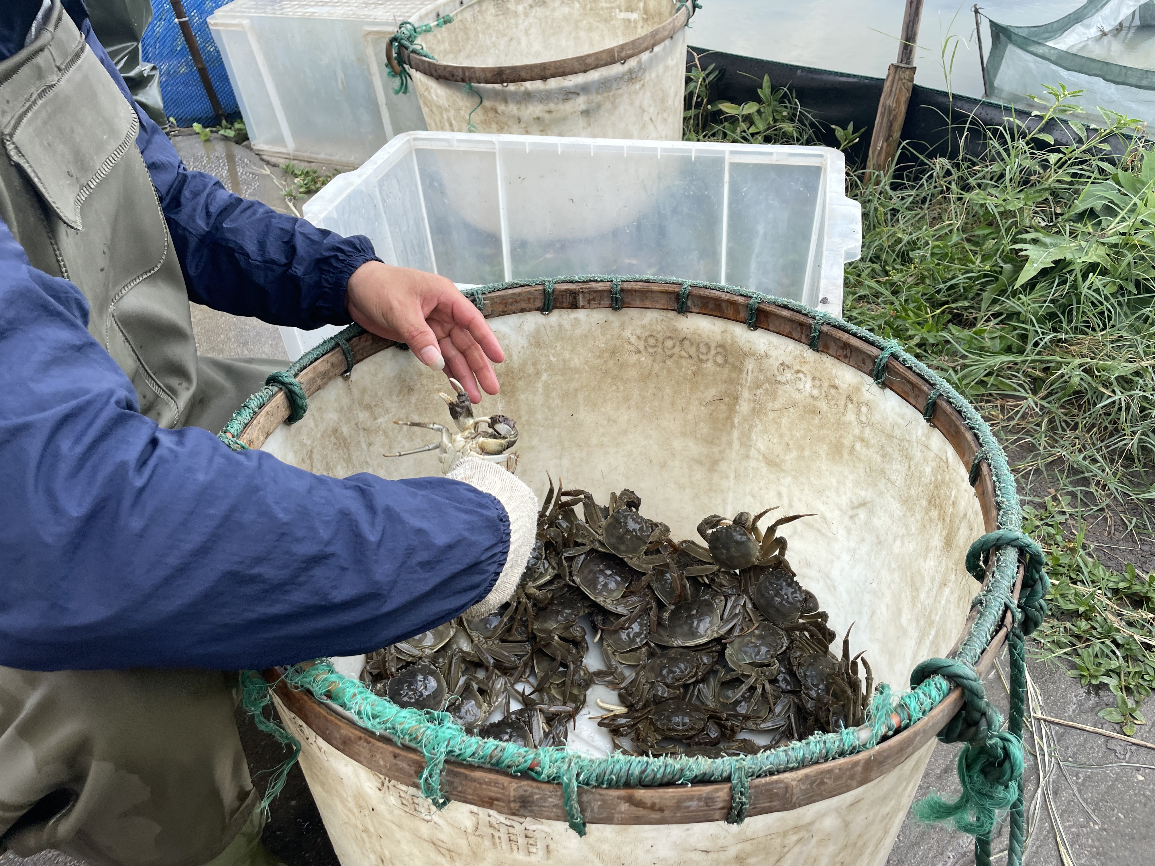 7月7日下午,记者来到位于新浜镇的上海渔浪水产专业合作社,工作人员正在蟹塘忙着捕捞“六月黄”,地笼一收,便捕捞上一桶活蹦乱跳的河蟹。“先挑肥的,再按重量归类。为了能让食客尝到肥美的‘六月黄’,我们会严格把控品质。”合作社营销总监戚敏霞说,“我们从6月底开始售卖‘六月黄’,一周发货量约为1600只,与去年同期基本持平。”