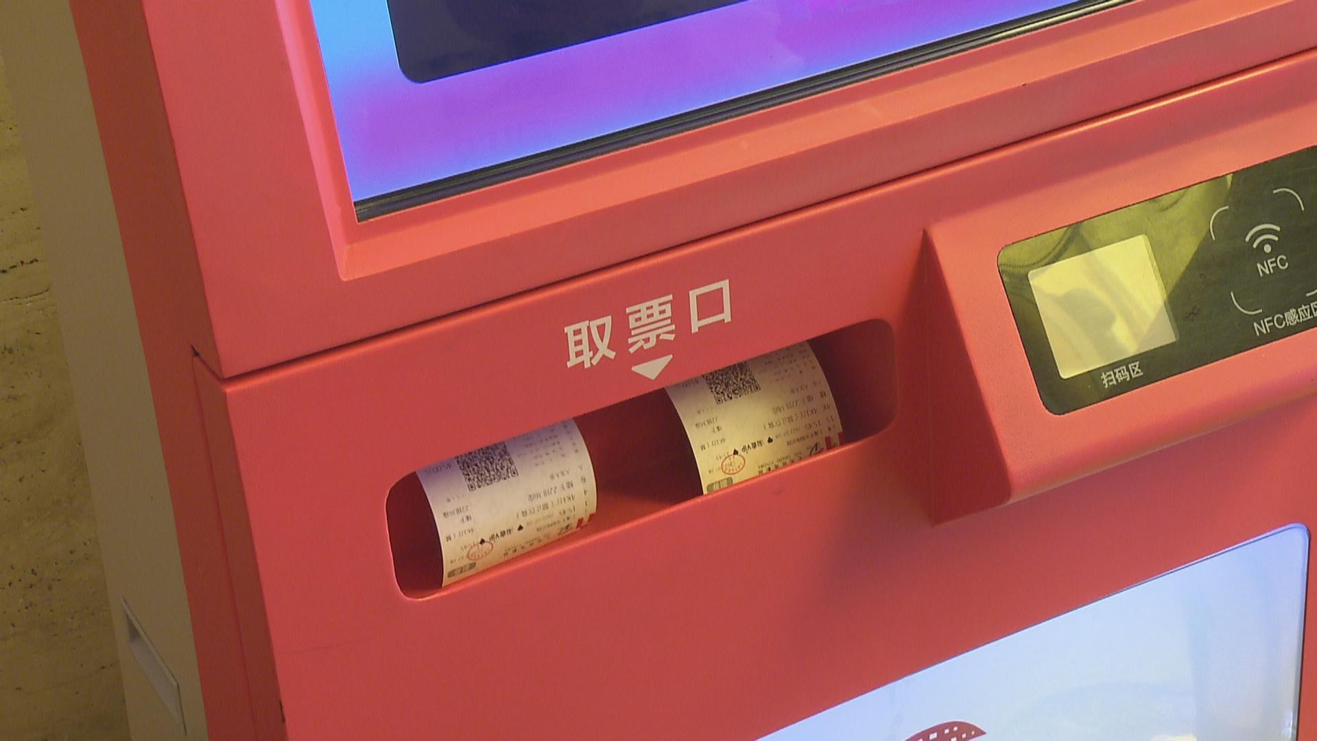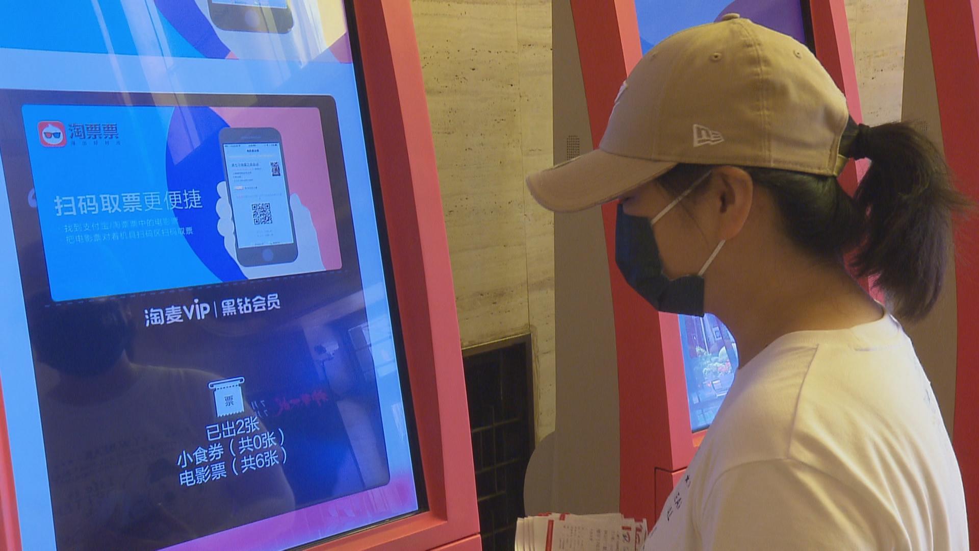 市民龚小姐购买了下午3点多的电影票,不过临近中午,她就和朋友提前来到电影院,在扫码完成登记后,两人来到旁边的取票机取票。重回电影院,龚小姐的兴奋之情溢于言表,她戴上了电影周边款口罩,希望以自己的方式支持影院回归,支持自己喜欢的电影。