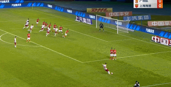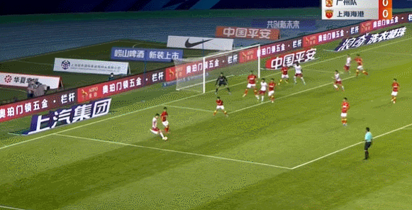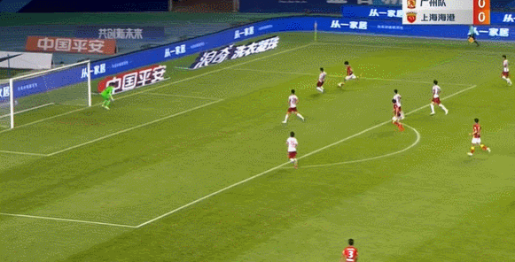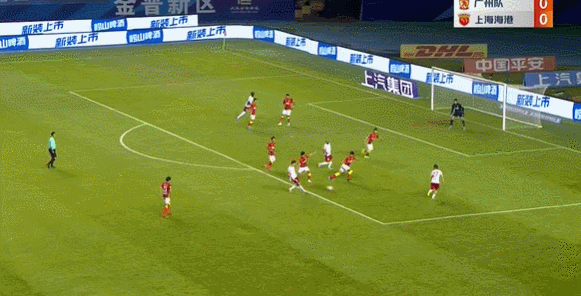 上半场,面对广州队严密的防守,完全控制中场的上海海港得势不得分,还险些被广州队攻破球门。
