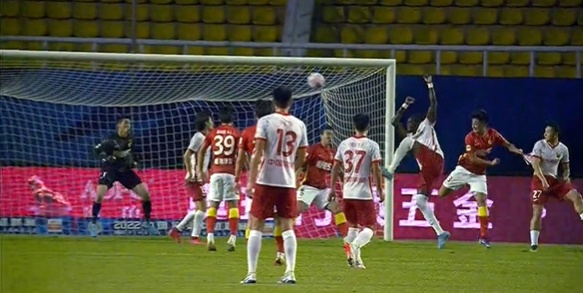 68分13秒,奥斯卡主罚任意球,恩迪亚耶抢点头球顶高了。