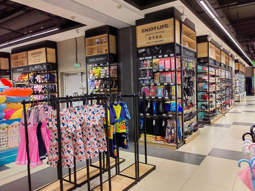 吉麦隆信业购物中心店在商品“翻新”的同时,对门店进行重新布局,设置多处应季商品柜,凉席、泳衣、防晒霜等夏季热销商品被摆放至店内各处醒目位置,方便市民选购。