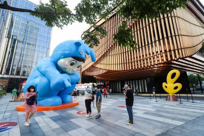 市民可在BFC室内外公共区域欣赏到十余件艺术作品。坐落于北区户外广场的泡泡玛特首个“DIMOO孤独症”巨型装置,由艺术家Ayan精心创作,褪去冗余色彩的洁白之身象征着孤独症或自闭症儿童,呼吁更多人关注特殊群体并给予耐心和理解。走进复星艺术中心四层观景天台,还将有“DIMOO一起去郊游”主题装置,邀观赏者共享夏日阳光。南区户外广场的艺术装置《无招胜有招》由艺术家tango呈现,憨态可掬的传统招财猫形象结合跳绳运动,展现了全新的趣味互动形态。