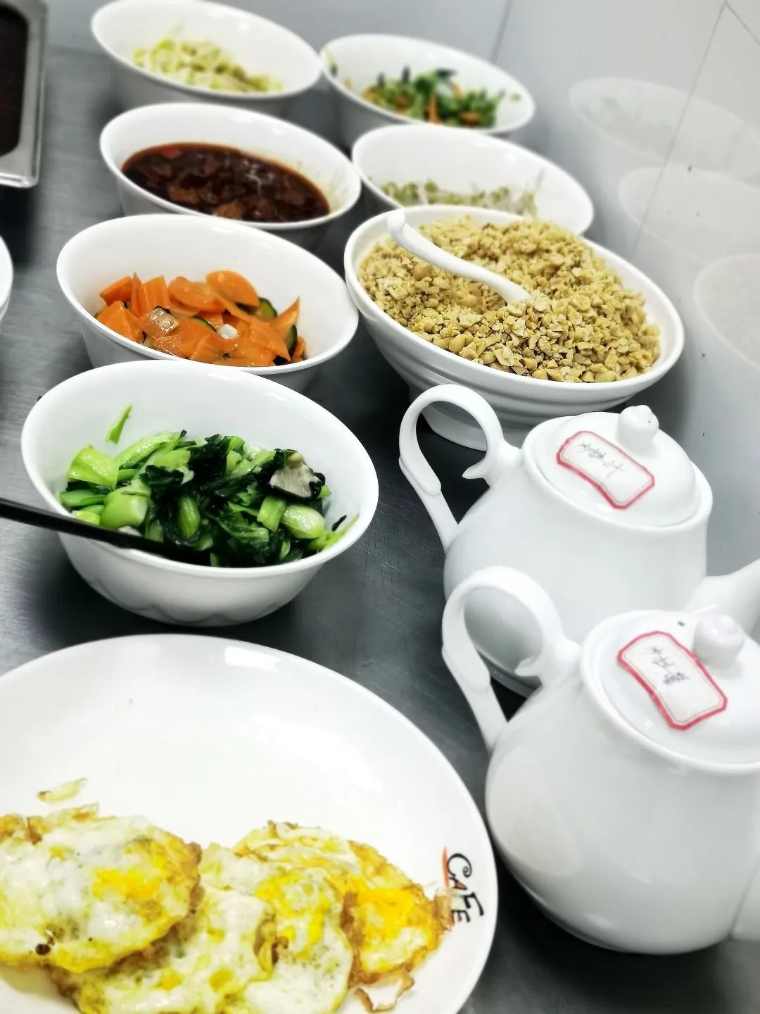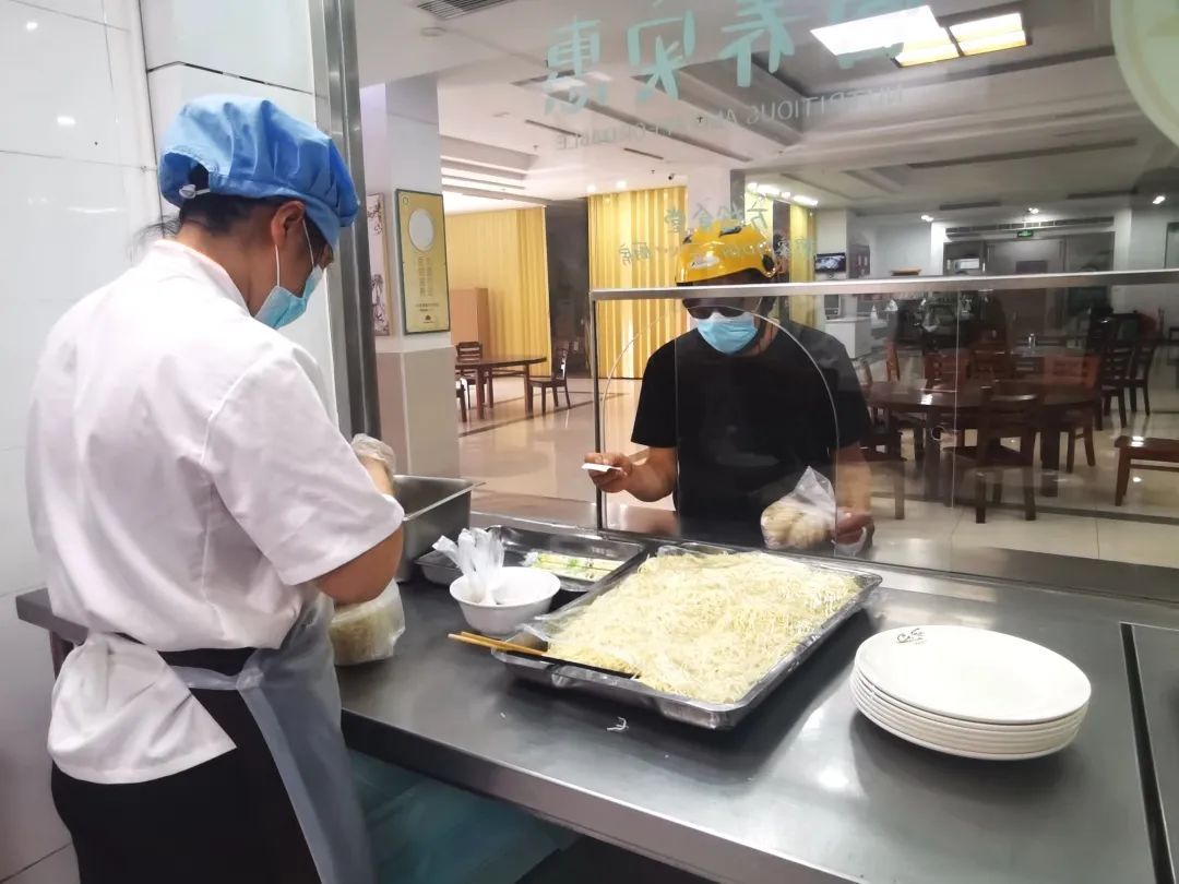 在食堂的厨房间,厨师们将蒸煮好的面条及时凉透,稍微拌点油后色泽诱人。今年,该食堂首次尝试在冷面中融入炸酱面的风味。“把我们传统的冷面跟老北京的炸酱面做了融合,既能吃到传统冷面的Q弹爽口,也能品尝到炸酱面的肉香。”方松餐饮总厨闵华介绍。