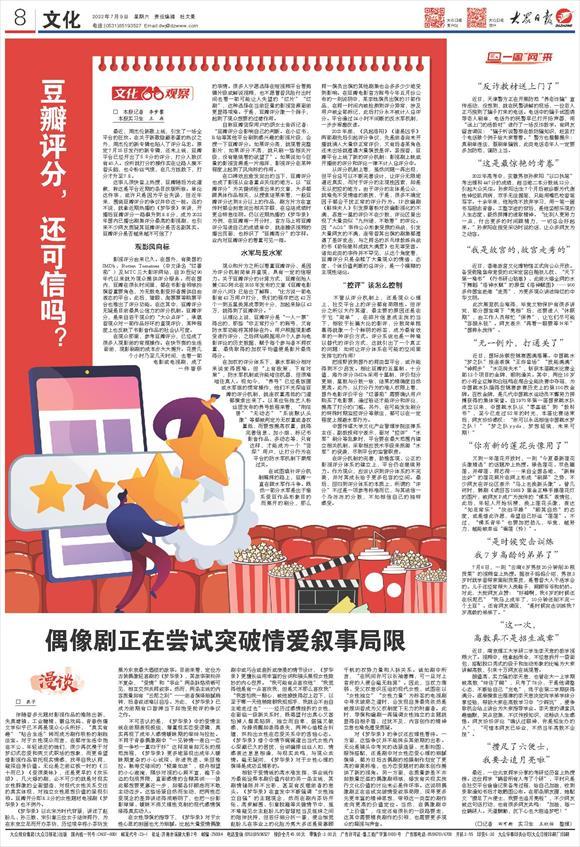 在评分机制的完善,助推客观、公正的影视评分体系的建立上,平台仍在继续努力。作为观众,应该认识到评分体系的不完美,并对其成长给予更多包容的空间。最后,回归到评分体系的本质上,所谓的“评分”不过是一项参考标准而已,与其迷信一个冷冰冰的分数,不如相信自己的独特感受。(大众日报客户端记者 李梦馨 实习生 王 冉 报道)