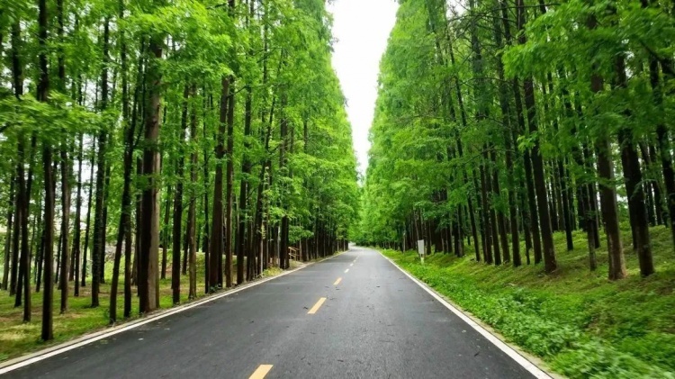 全长15公里的塘下公路,两侧是茂密的水杉林。