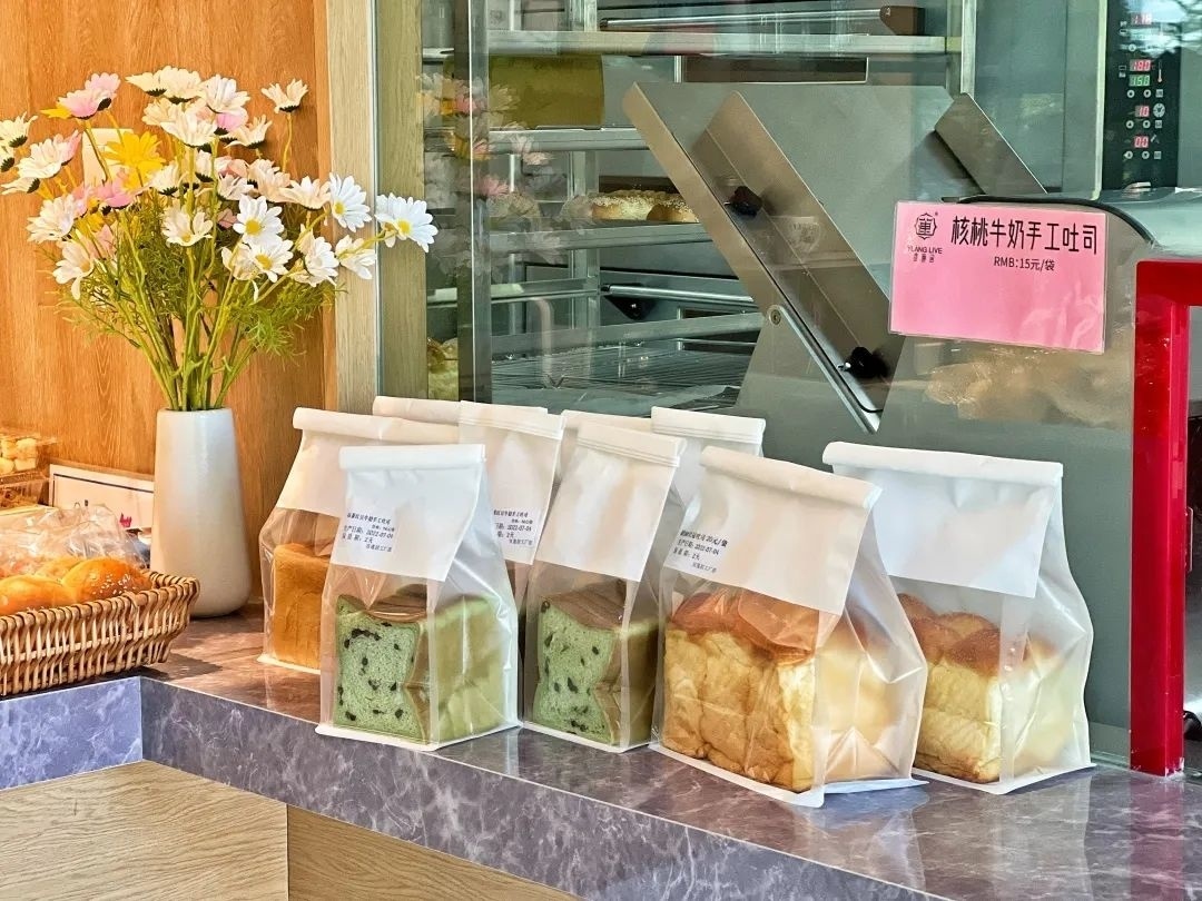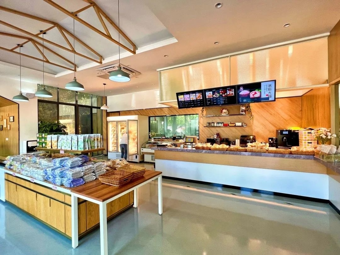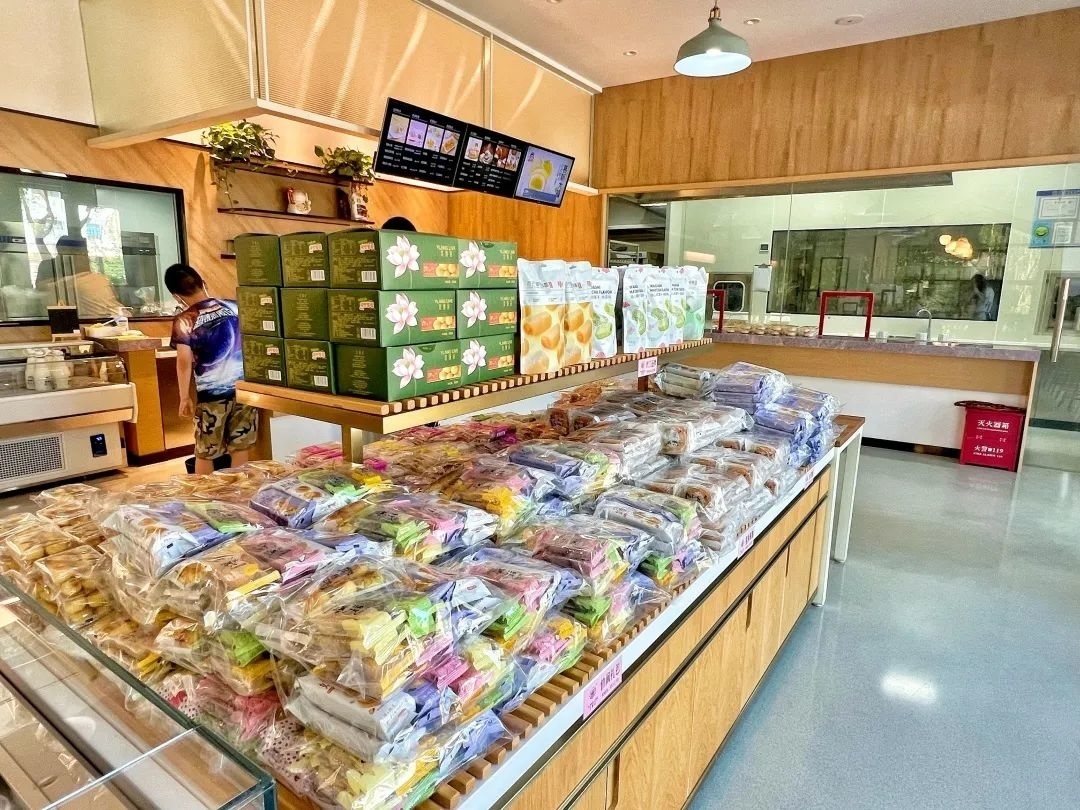 该企业的这家工厂直销店名叫“宜莲居”,门店直接与整个企业的厂区相连,后面就是约21000平米的现代化糕点生产车间。