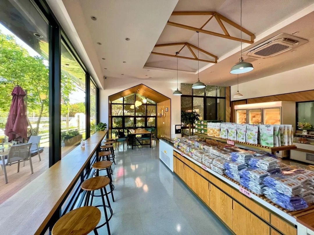 整洁敞亮的店内,货架上摆满了琳琅满目的点心,糕点与咖啡的香气扑鼻而来,惹人垂涎。