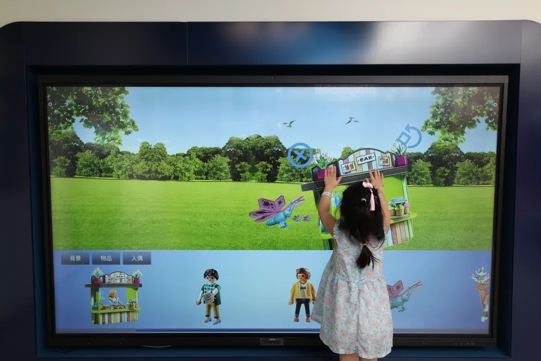 在店内,记者看到游戏体验区增加了许多数字化交互游戏,一进门就可以通过数字化体感游戏进行互动,部分店员还穿上了广受欢迎的玩偶套装与孩子们互动。