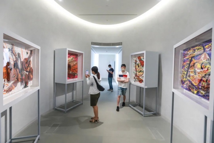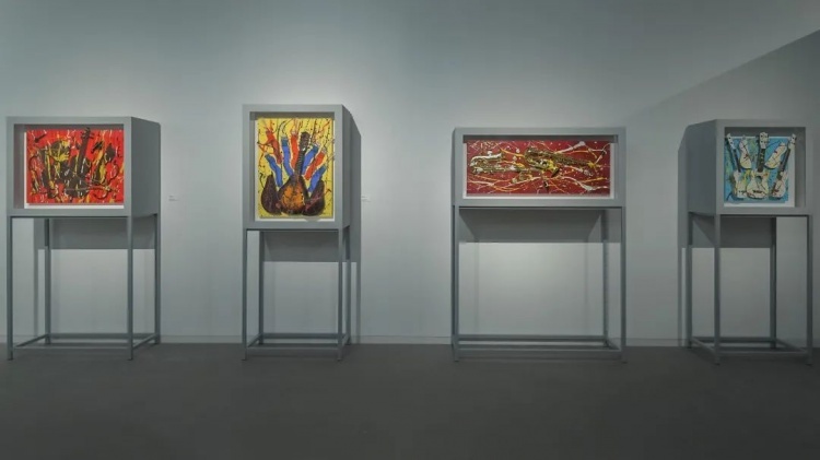 展厅内,5位大师的作品分置不同展区,并被赋予不同的背景色彩。