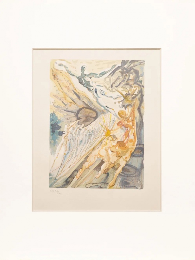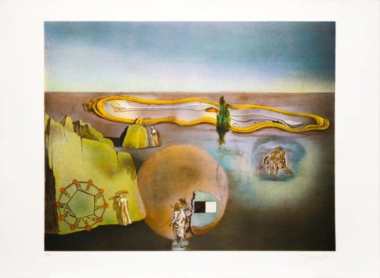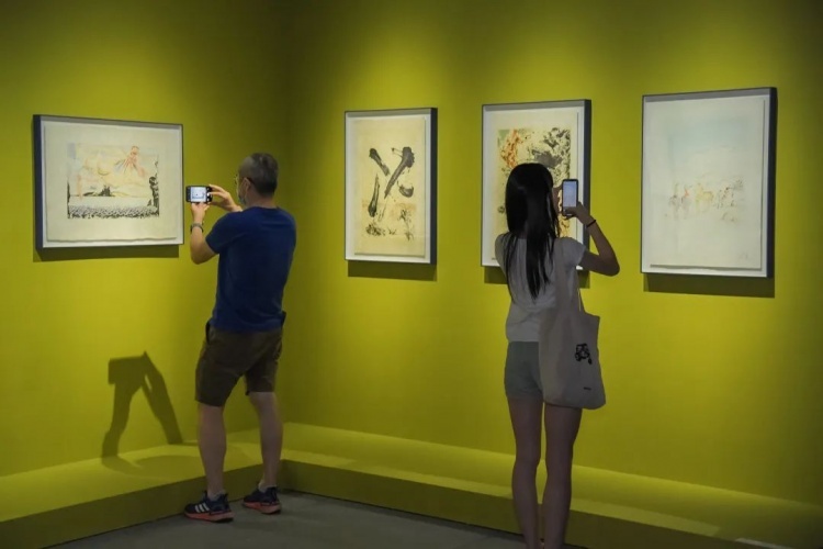 达利是超现实主义艺术家,此次展出了他的一些代表作。此外,达利的“十二星盘”也在一珠宝柜中展示,配以天幕打造整片星空。