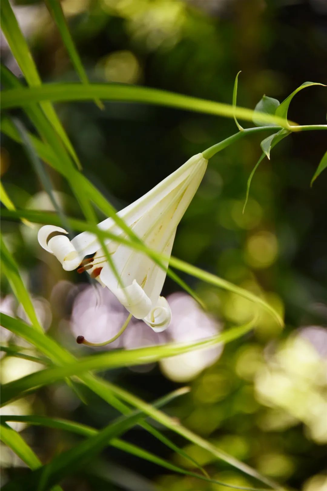 每株“巨人百合”都头顶近十朵花苞,部分已经开放。洁白的花瓣,坚挺绽放,摸上去质感十足,红色的花药围绕着柱头努力延伸,吐露芬芳。相比普通的百合花,喇叭花型的“巨人百合”花量繁多、株型高大挺拔,在雨露的甘霖下茁壮成长,煞是惊艳。