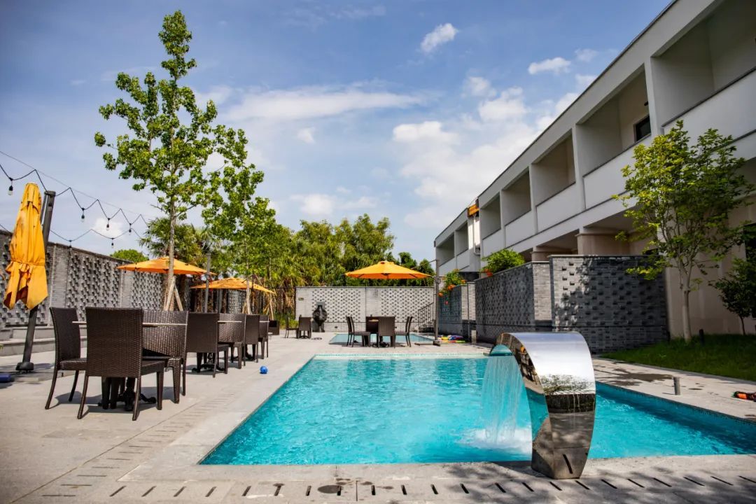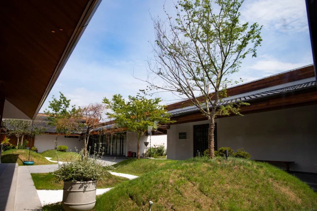 香朵二期占地面积约5000平方米,以餐饮和住宿为主。与一期英式建筑风格有所不同,二期采用的是新中式建筑风格,乡村风和现代感的结合,打造出简约雅致的休闲空间。