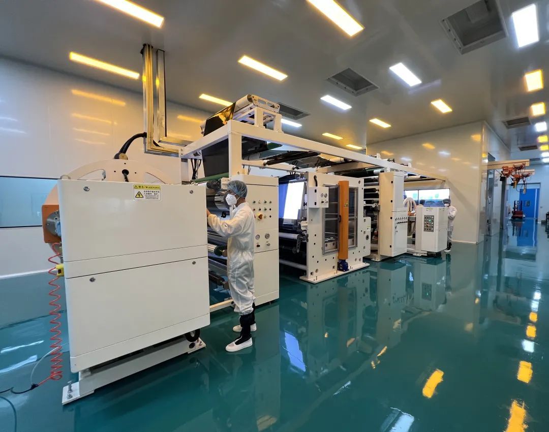 在畅的新材料全新无尘车间里,一条最新引进的电子防窥膜全自动生产线落地。研发人员正进行各项技术参数的调试,为投产做准备。目前,该产品已取得下游客户大量订单。