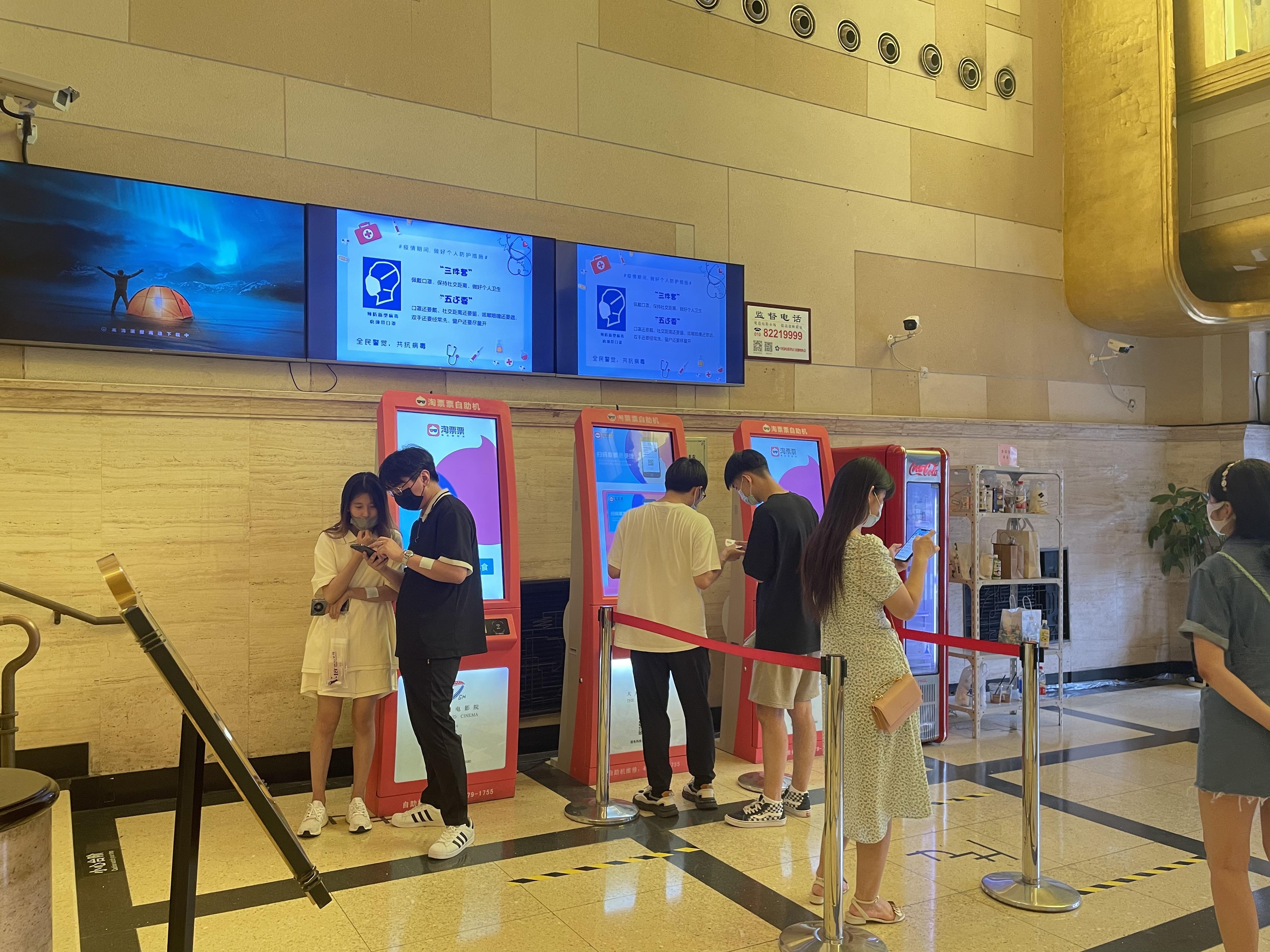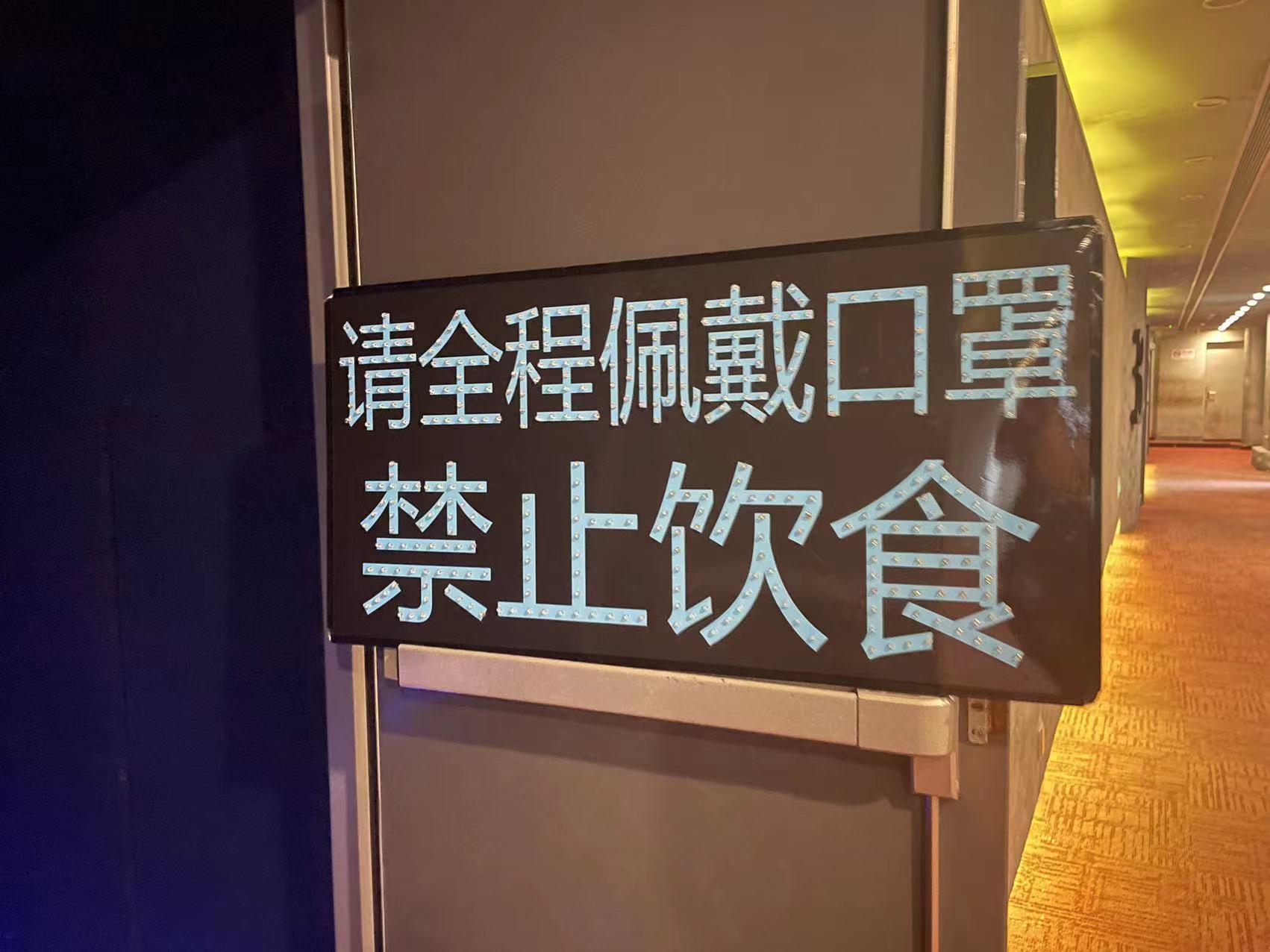 为了接待热情的观众,电影院保持着严的的工作态度。记者了解到,现在不开放人工售票。从售票处的显示屏可以看到,不少场次的票子都已售完。院方工作人员对每个厅进行严格的消毒,并且每个厅最多只接待百分之五十的观众。影片开始前,大屏会播放配带口罩观影的提示,工作人员也会举着告示牌,让观众自觉遵守防疫措施。确保观众在安全的环境下观看影片。