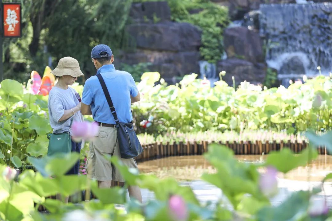 荷花是夏季代表性植物,颜色丰富、品种多样、饱含中国传统文化内涵。作为中国的十大名花之一,它不仅花大色艳,清香远溢,自来古人就对莲花充满了爱意。在夏日里积极寻觅一处赏荷圣地想必也是不少人的乐趣。奉贤区的荷花睡莲节已举办多年,正如有着无穷碧色的接天莲叶一般接踵而来,充实着奉贤人民的炎炎盛夏。