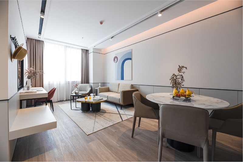 公寓目前共有108套房源,面积从32平方米到76平方米不等,房型则从单房公寓到行政套房一应俱全,生活设施配套齐全,遍布公寓的24小时安保系统还时刻保障着住客安全。另外,公寓还打造了会议室、休闲廊、健身房、洗衣房等多处公共空间,可提供生活服务、休闲健身、商务办公等服务。