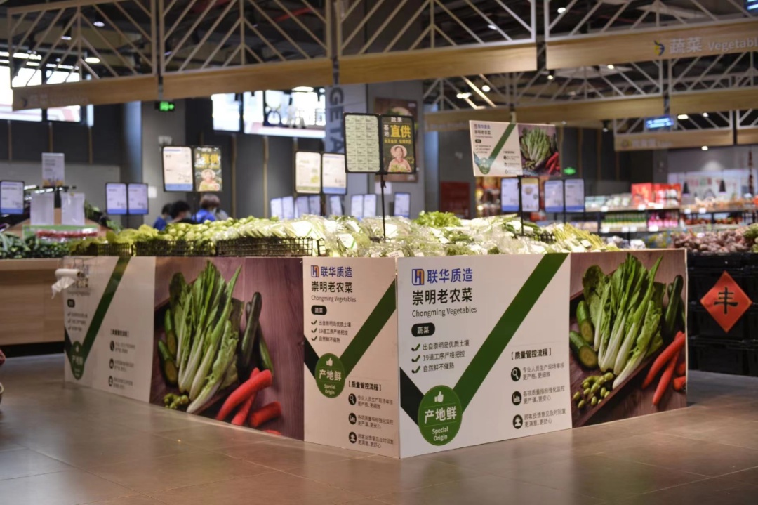 作为崇明重点品牌连锁企业,联华目前在本区已有61家直营及加盟店,整体零售业的门店占比为48%。“十四五”期间,联华还将和崇明供销社合作,计划将崇明门店扩充至100家。这个计划以消除崇明地区线上、线下服务的空白区域为目标,围绕市民最关心的“菜篮子”,打造高质量“15分钟便民生活圈”,在继续拓展乡镇中心门店的同时,试点并推广村级网点布局,实现“村村亮”。