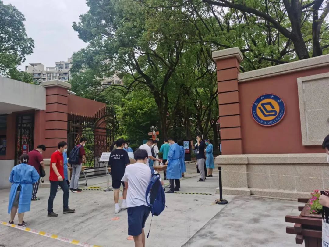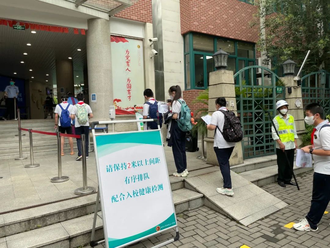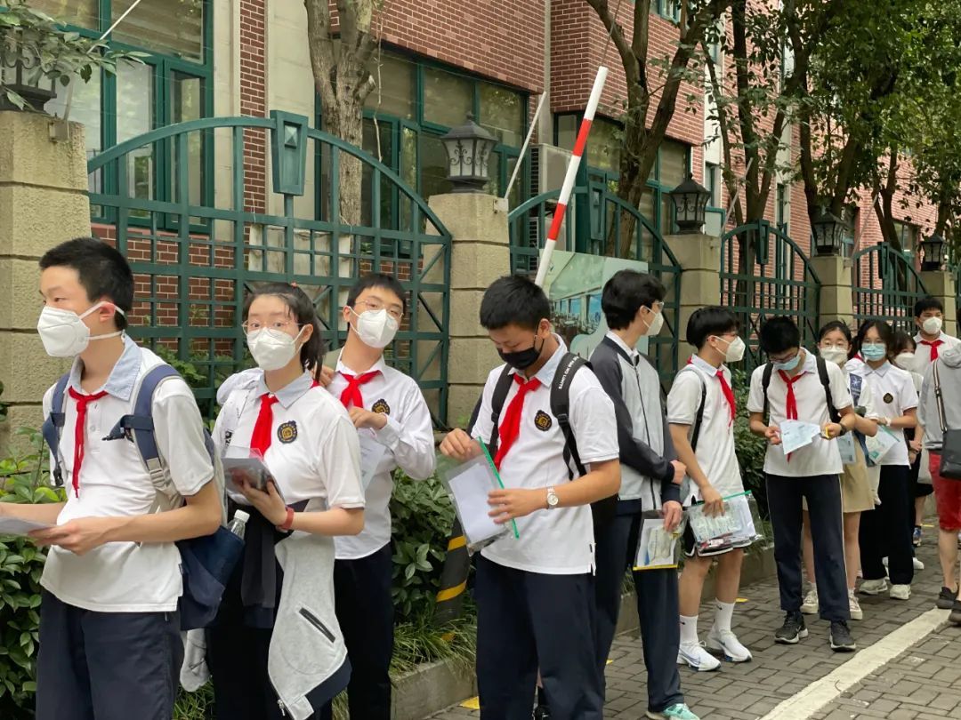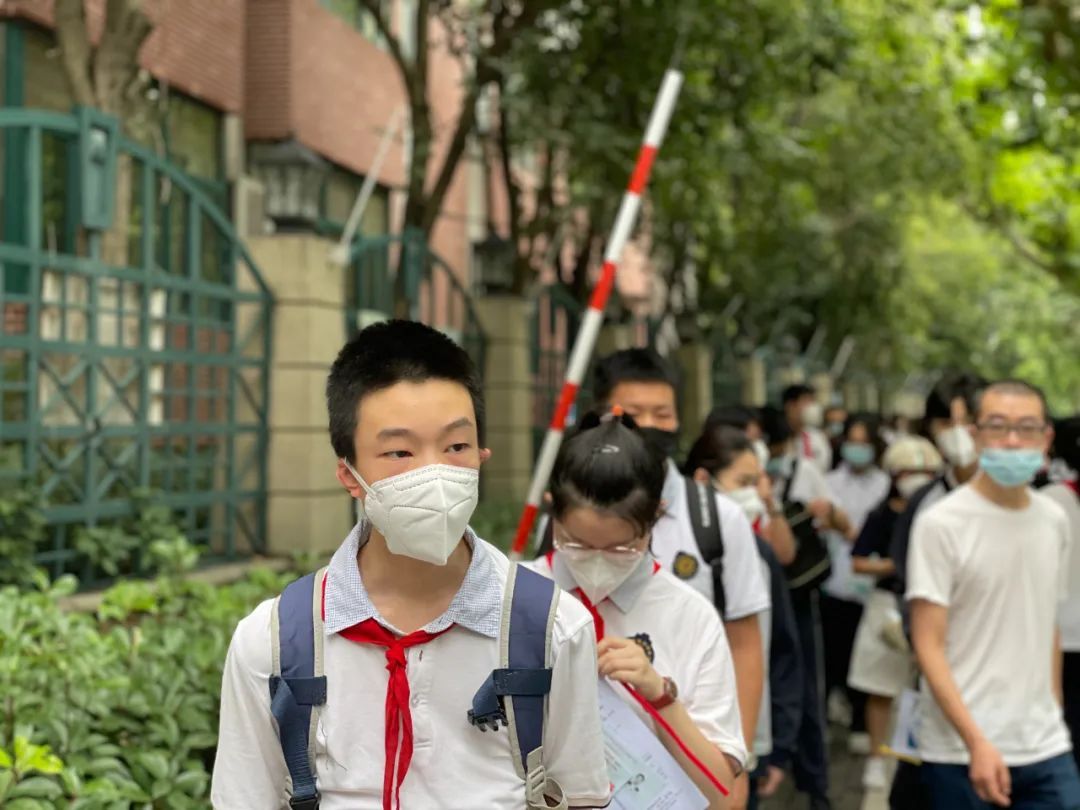 同济大学附属七一中学考点外,考生们开始有序入场。