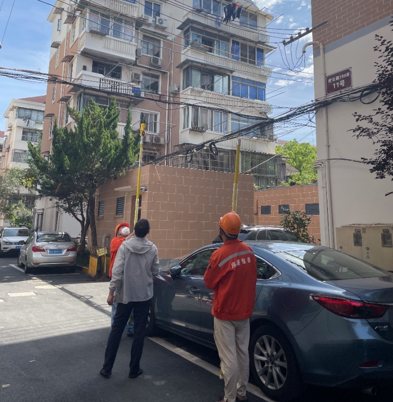 一组物业人员正在对一处