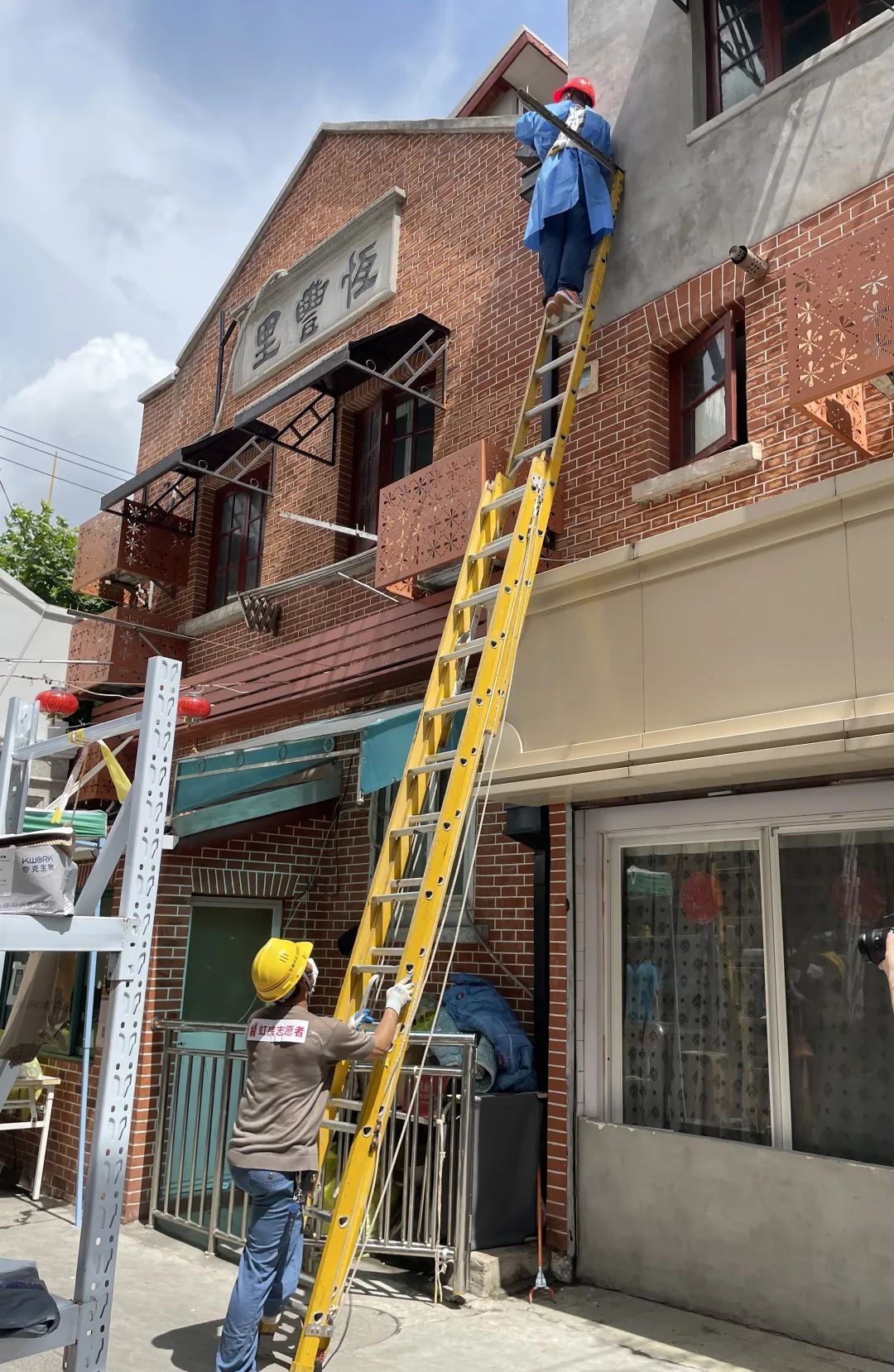 还有物业人员借助扶梯