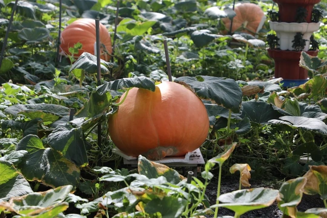 专门负责照料这100多个“大家伙”的张师傅介绍说:“巨型南瓜从2月初就种下,为了给巨型南瓜提供足够的养分,每个瓜的藤蔓就占据一整条田垄,占地30至40平方米。”
