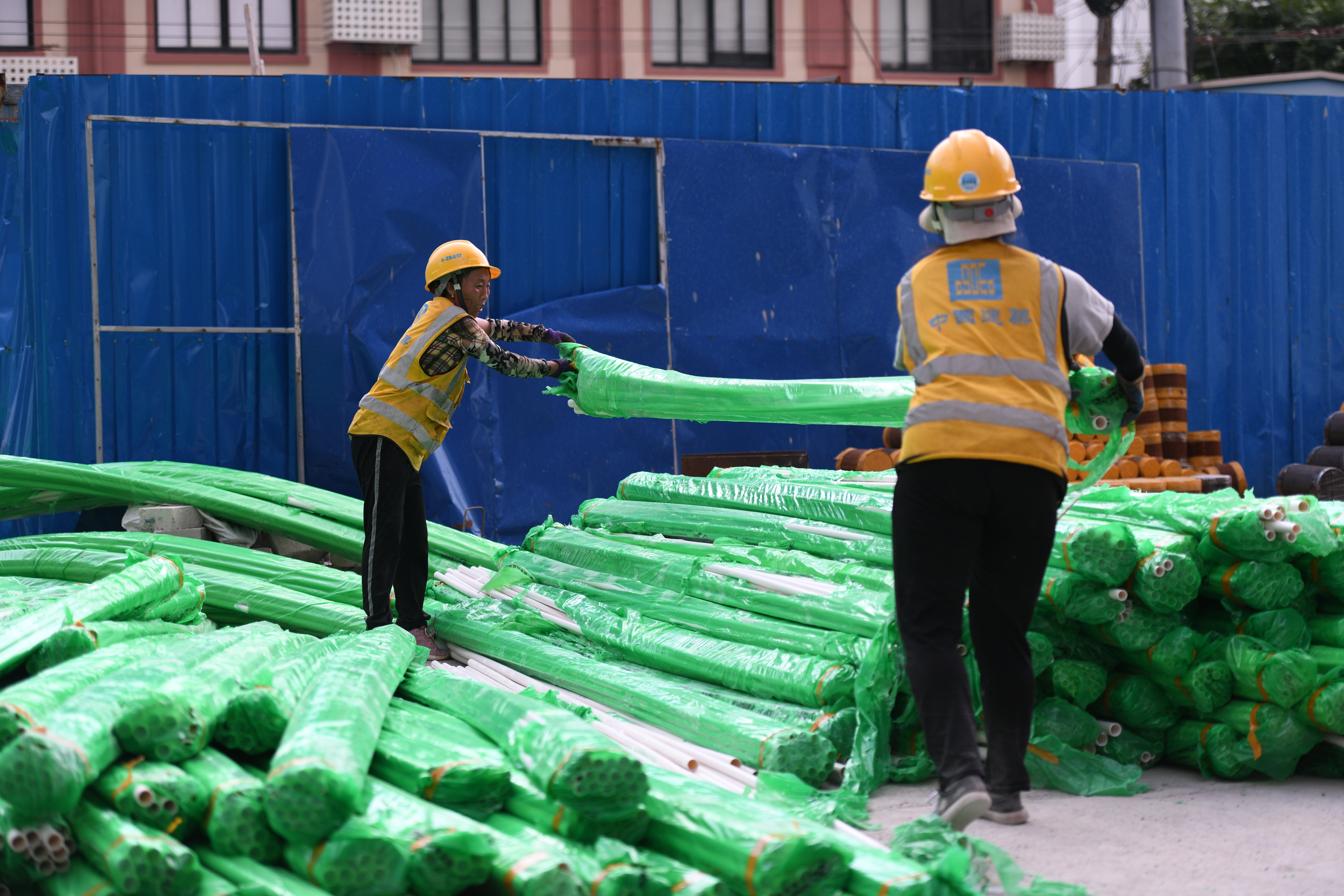 中建人用自己的身体测量城市的温度,用辛勤的汗水创造城市的美好。高温仍在持续,一道道平凡而坚毅的身影,构成了城市里一道靓丽的风景线,他们用汗水记录自己的平凡与艰辛,为整个城市“添砖加瓦”,诠释责任与担当。