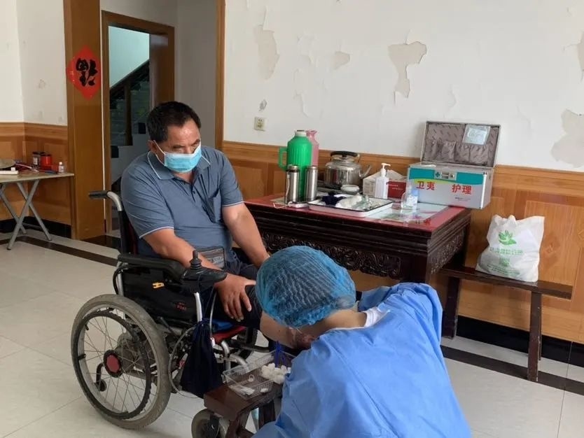 一天上午,金山区残疾人居家医疗(压疮)护理服务项目护士俞蓉蓉来到了患者杨仁龙的家中,为杨仁龙的压疮消毒、清创,并为他更换压疮敷贴。除了压疮护理之外,俞蓉蓉还会为患者提供量血压、测血糖等服务。
