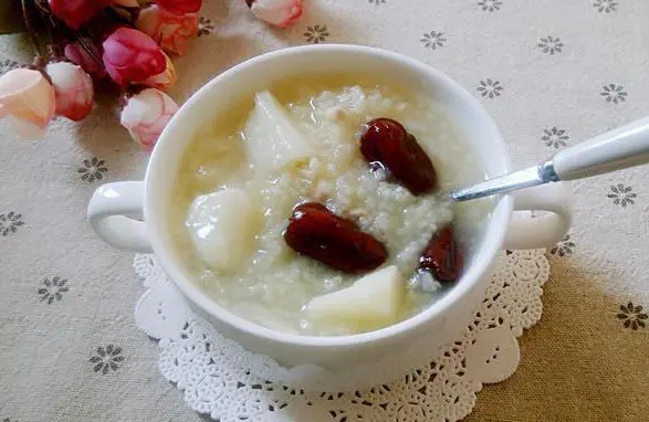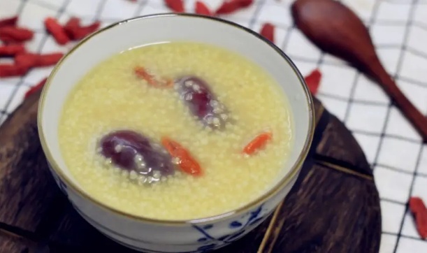 制作方法:大枣去核,与茯苓、山药、粳米、枸杞同煮成粥,加适量红糖调味即可。