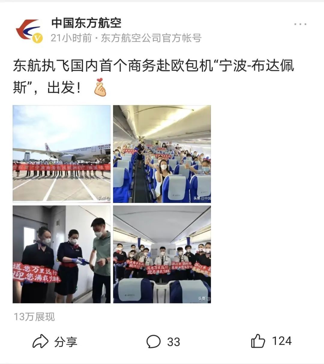 东航执飞国内首个商务赴欧包机“宁波-布达佩斯”