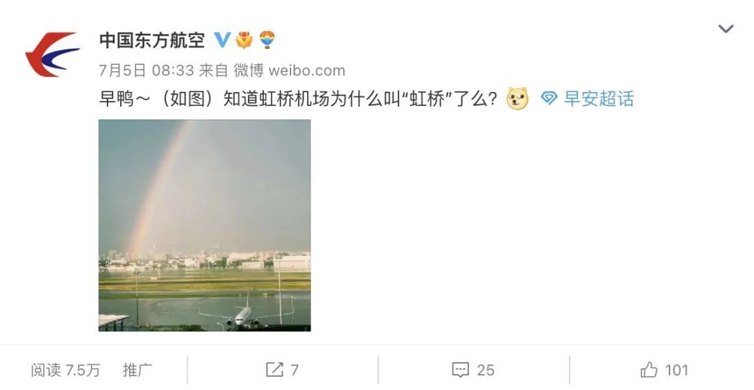 微博共发布26条内容,总流量达224万。你见过飞机上的“婴儿摇篮”吗?东东家婴儿篮,出行带娃解放双手必备!东东带你近距离观察飞机是如何更换发动机的。东东邀您共赏有着清晨朝霞、落日黄昏、绚烂彩虹的机场美景。