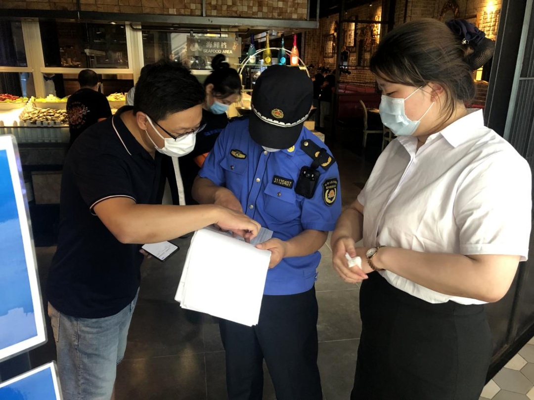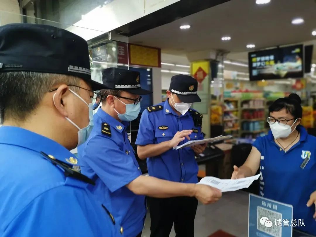 浦东城管开展沿街商铺疫情防控工作专项检查,对商户健康登记情况、核酸检测记录、消杀记录等开展检查,并利用城管APP加强从业人员数据采集和管理。