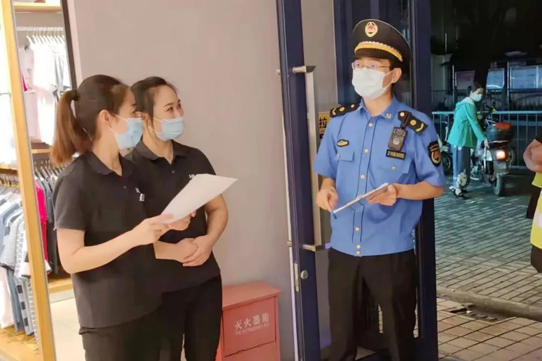 松江城管在前期发放“六个必须”告知书的基础上,执法队员逐户上门开展监督检查,重点查看“六个必须”落实情况:是否合法合规经营,严禁违反法律法规、防疫规定擅自开门经营;是否张贴“场所码”或安装“数字哨兵”,严格规范使用;是否配备合规消毒设备,开展日常消毒并做好台账记录;是否做好经营场所环境清洁工作,保持通风,生活垃圾、餐厨垃圾等做到日产日销;是否加强经营人员健康监测,规范穿戴口罩、防护面罩等;是否合理限制客流,避免店内人员聚集。