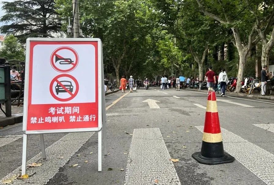 与此同时,杨浦交警在各个考点附近维持交通秩序,引导送考车辆有序停车,并且在永吉路靖宇中路路口和永吉路双阳路路口设置了禁行标志,避免车辆在考点门口聚集拥堵,确保考生顺利进入考场。