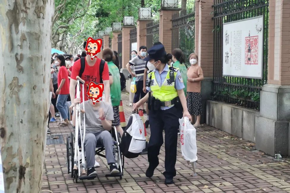 今年,李东凌也遇到了一位特别的考生。这位考生双腿不能长时间站立,平时只能靠轮椅和拐杖出行,由于情况特殊,李东凌和家长亲自护送考生入场。