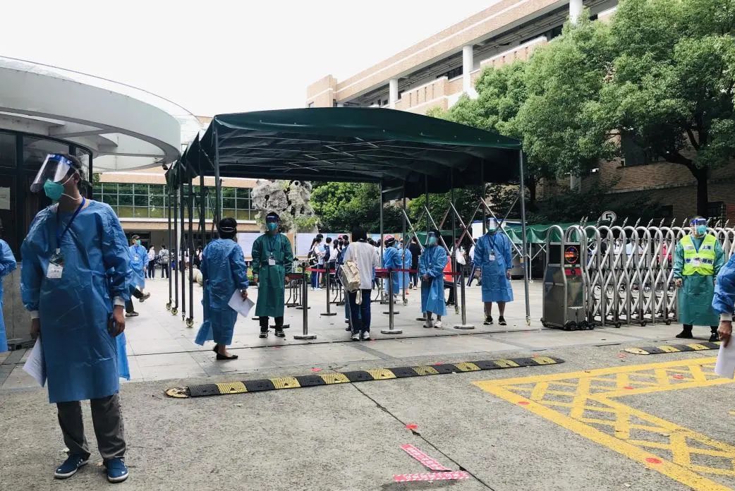 早上7点50分,上海市控江初级中学考点开始核验考生信息进场候考。