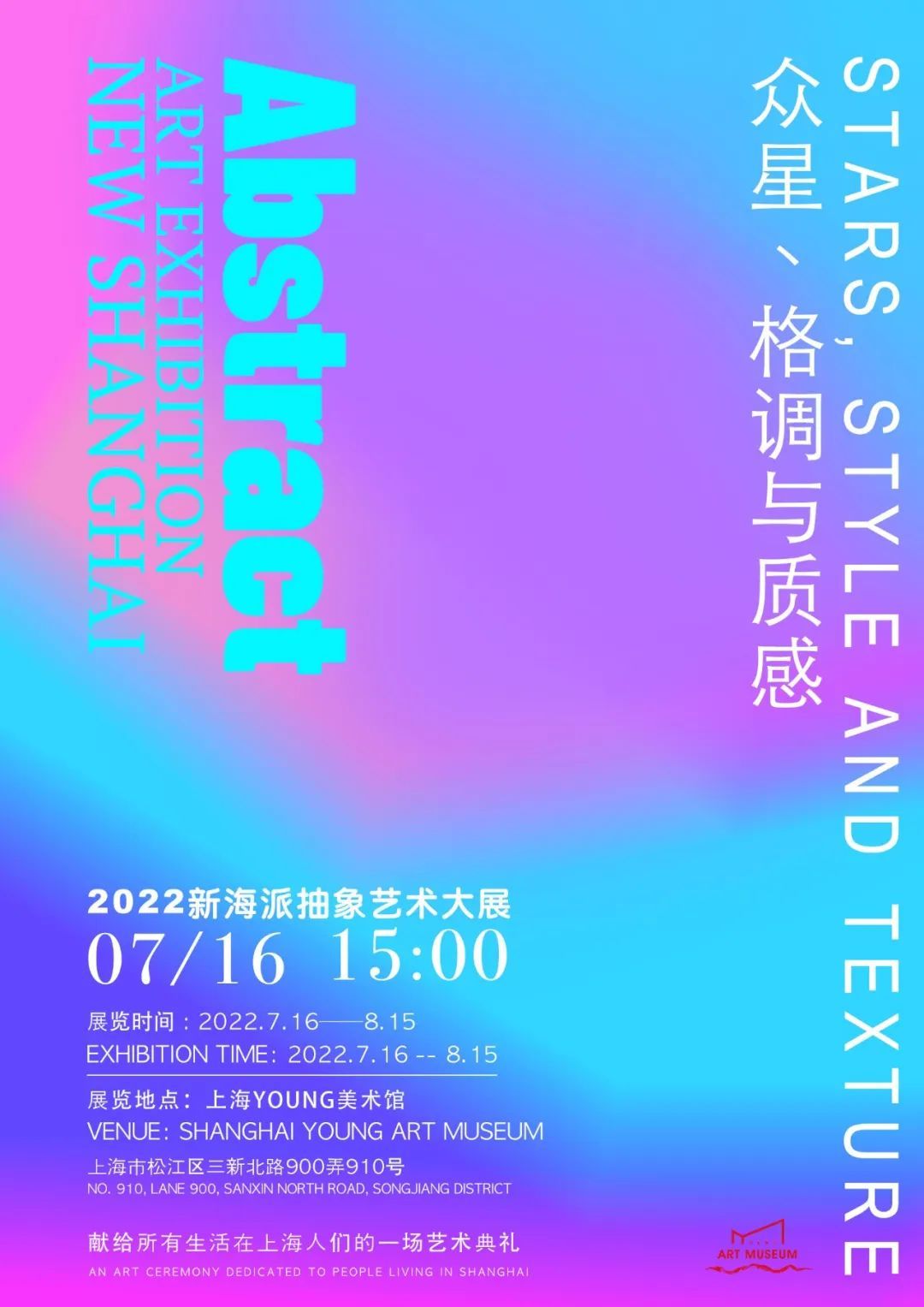 位于松江泰晤士小镇的YOUNG美术馆以“侬好,上海”为名,倾情打造今年首次艺术展览《2022新海派抽象艺术大展》。