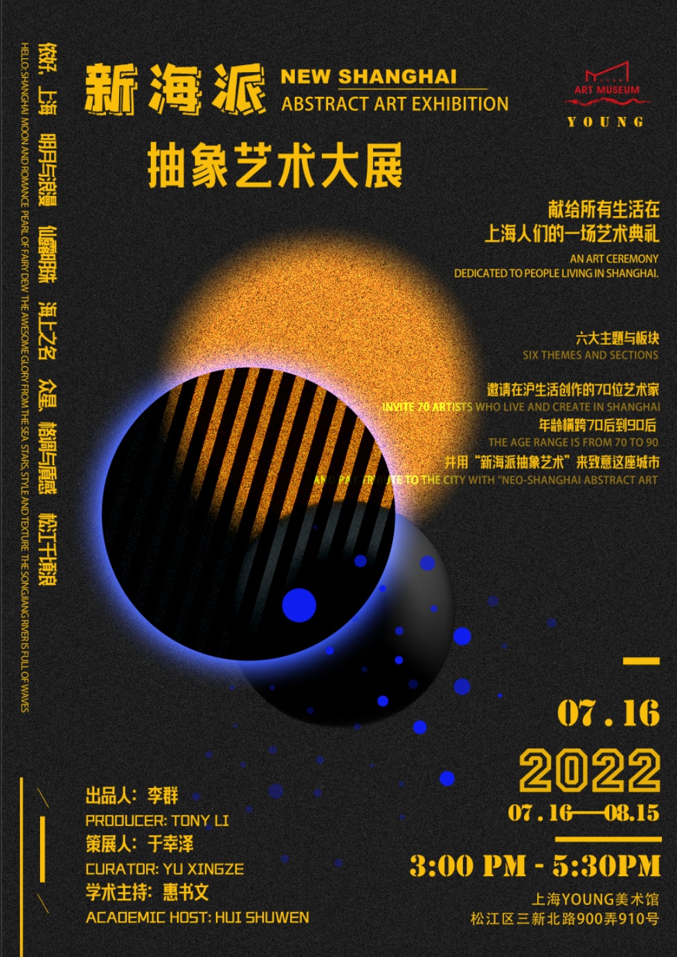 本次活动由上海YOUNG美术馆发起并主办,中共上海市松江区委宣传部、上海市松江区文化和旅游局、松江方松街道作为指导单位。YOUNG美术馆创始人李群先生担任出品人,同济大学于幸泽博士担任策展人,YOUNG美术馆馆长惠书文担任学术主持。