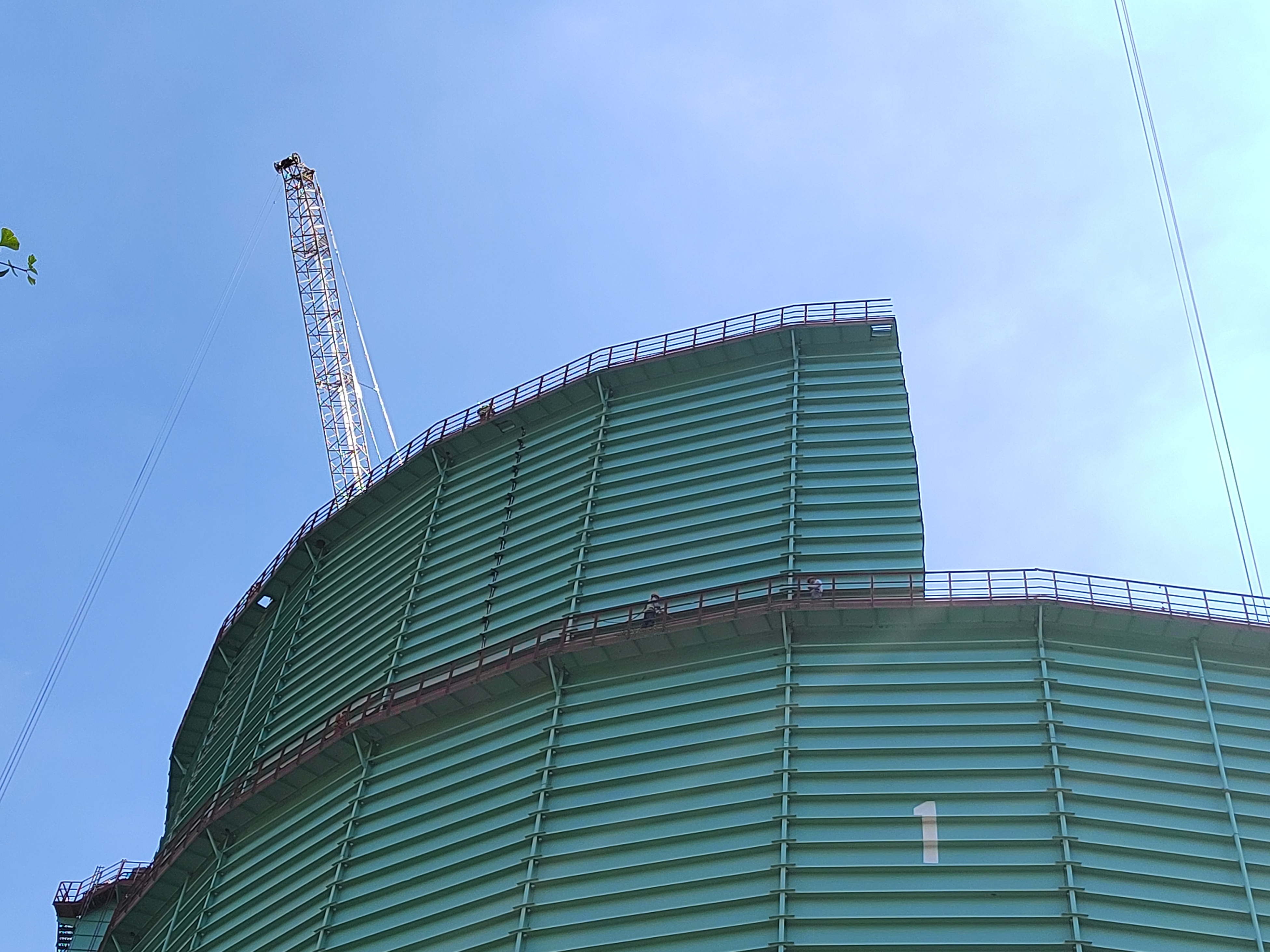 这么大的气柜怎么拆?记者从施工方了解到,由于气柜外立面是钢材,为了降低对周围居民的生活影响,施工方采取国际通用的切割法进行拆除。“恢复施工后,我们先对1号、2号气柜顶部圈梁进行有序拆除,”施工方负责人表示。
