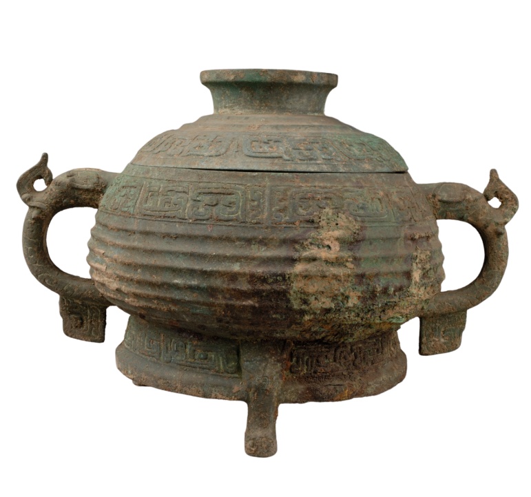 此件簋上刻铭文:友父乍(作)宝簋,子子孙孙永宝用。簋是中国古代盛食物的器具,主要用于放置煮熟的饭食。簋也是商周时重要的礼器,宴享和祭祀时,多以偶数与列鼎配合使用。