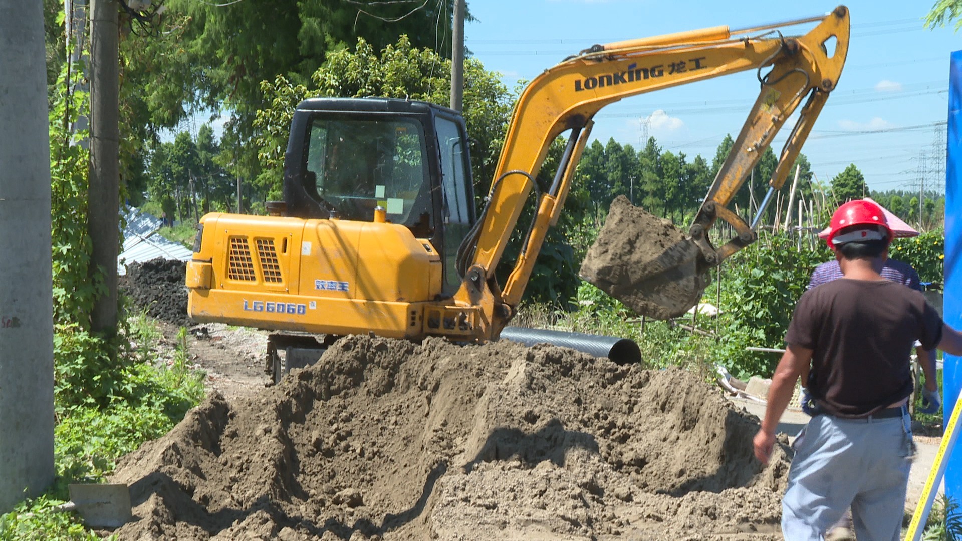 新浜镇南杨村综合为老服务中心建设项目于6月初复工,是全区第一批复工的建筑工地。7月8日,记者在现场看到,目前项目主体结构已经完成,工人正在加紧铺设污水管网。该建筑共有地面三层,内部装修也在同时进行,水电工人正在安装消防报警器。