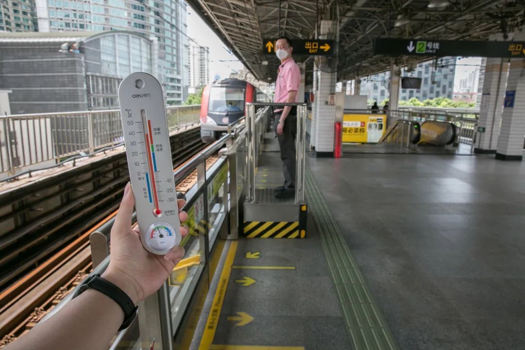 “站”高温,是对高架站台站务员最贴切的形容。刘站长坦言道,高温来临,站务员仅在岗10分钟就会汗流浃背。现在加之疫情防控较为严峻,无论多热都要佩戴好N95口罩。此外,根据天气情况,车站会灵活增加站台岗位工作人员的换岗频次,现在已经由原先的1.5小时换岗变为0.5小时一次,以降低烈日下的劳动强度,保证员工在岗状态。