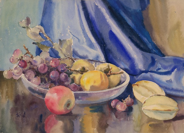 《葡萄与水果》来自中国水彩画大师李詠森,此作一反画家平时清淡温润的风格,而是浓烈饱满,视觉冲击强烈,这种配色使得本作品在李詠森众画作中很是出挑,具有较高的艺术价值。