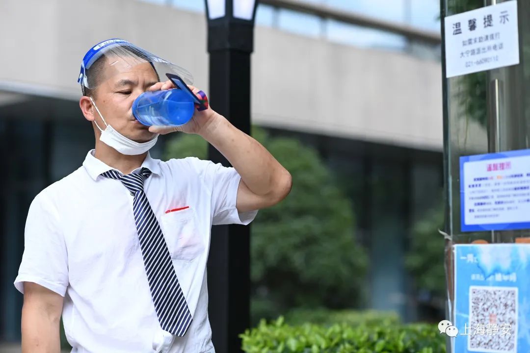 在核酸检测现场,全副武装的“大白”“小蓝”们,冒着高温酷暑,紧张有序地开展工作。由于天气炎热,不到半小时汗水就顺着皮肤流到了脚底,防护服内的衣服早已被打湿,面罩里全是汗水。