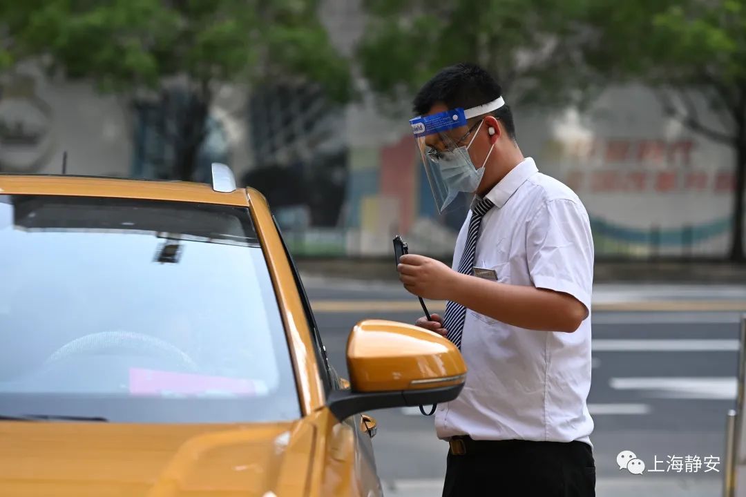 在市北高新园区,物业工作人员在烈日下有序引导进出车辆,进行防疫检查登记,为园区的安全站好每一班岗。