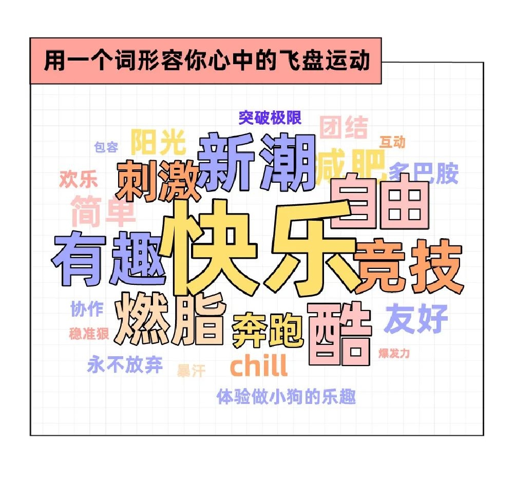显然,对于当下的年轻人而言,飞盘已经不仅仅是一项运动,更是一个新兴的“社交工具”。在体验运动快感的同时,认识志同道合的对象朋友,也未尝不是一件好事。当问及“如何形容心中的飞盘运动”时,大家的字里行间,满是纯粹的快乐和享受。
