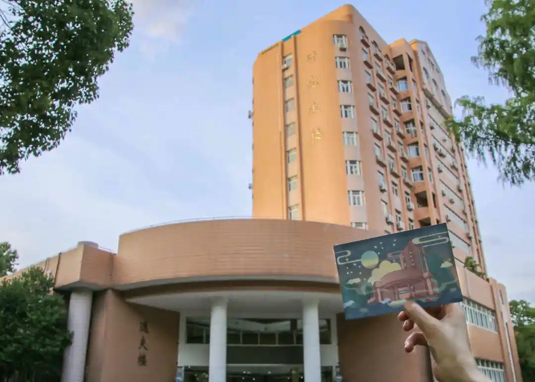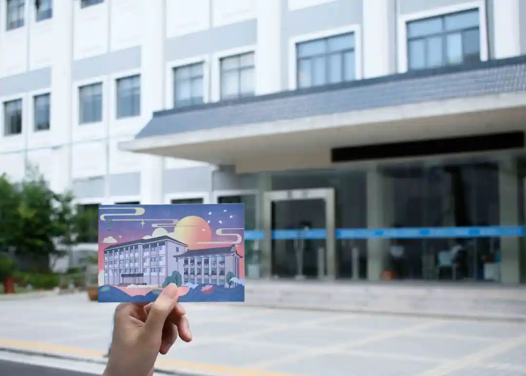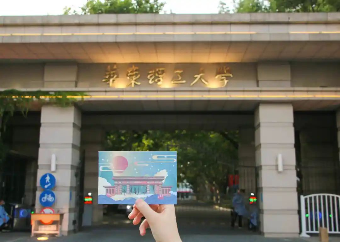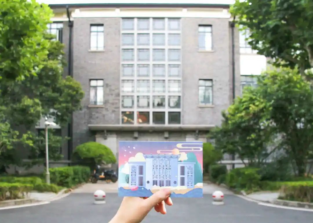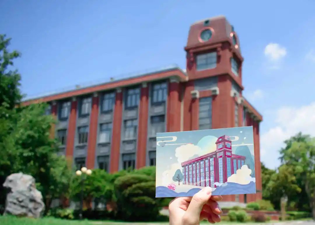 此外,还有手绘华理建筑明信片,如梦如幻的背景中华理地标建筑巍然耸立,寓意着学校将带领学子们在知识的海洋中乘风破浪。