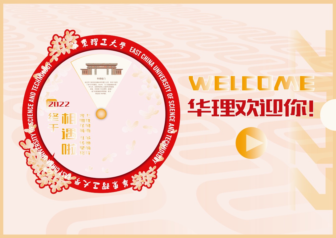 打开礼盒,汇聚华理历史记忆的建筑转盘映入眼帘。随着转盘转动,建筑似在一一诉说华理的历史与荣耀,转盘周围的桂花元素,取“蟾宫折桂”之意,庆贺学子们考入华理。