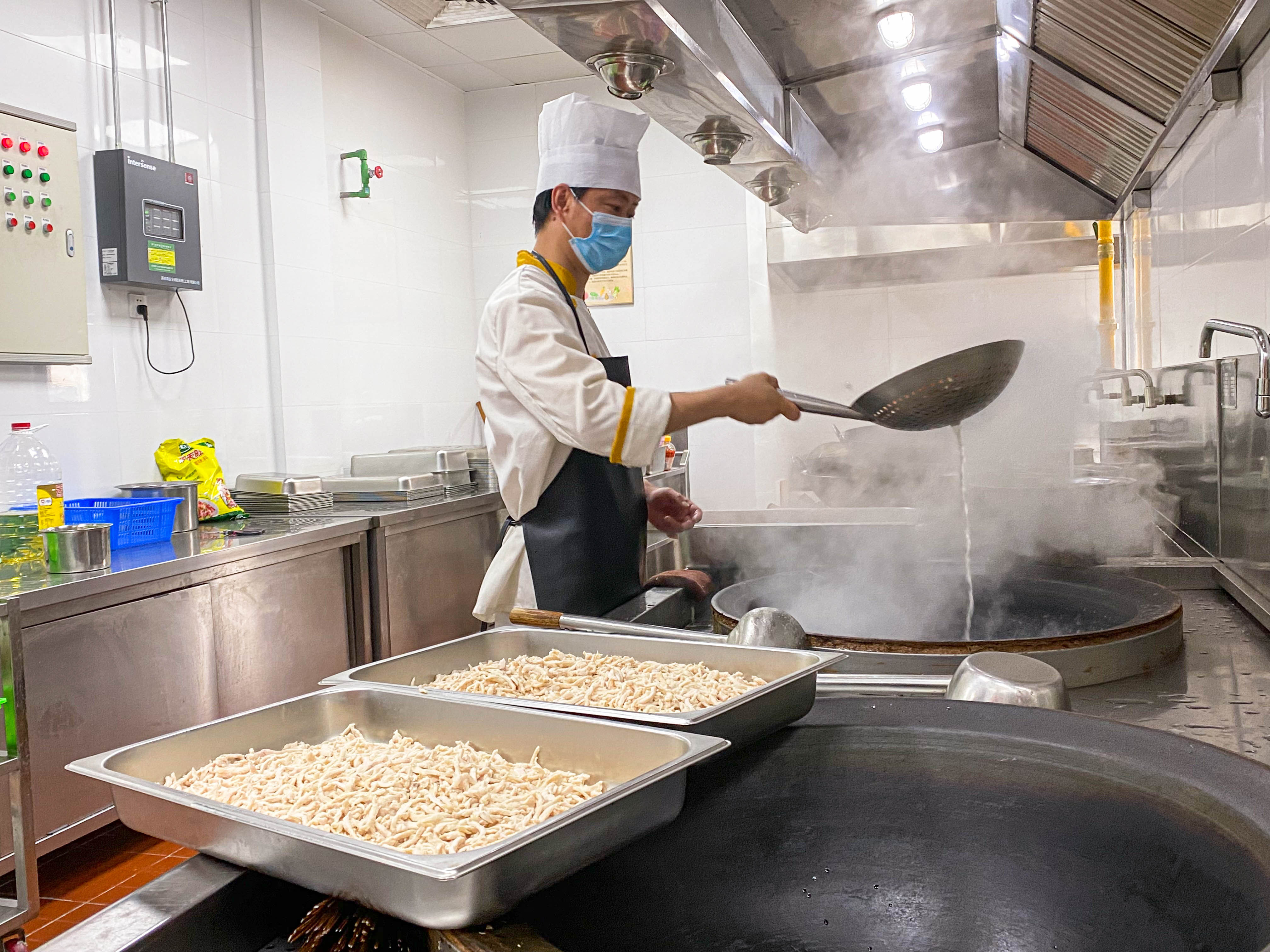 7月11日早上,泖港镇黄桥社区食堂后厨香气四溢,工作人员正忙着准备午餐。这些荤素搭配合理、营养均衡的午餐被打包放入保温箱,再由送餐员送到村里的老年人家中。6月1日起,黄桥社区食堂恢复营业,为附近村庄、残疾人中心、为老服务中心以及黄桥幸福老人村供餐。值得一提的是,工作人员还为独居、行动不便的老人提供送餐上门服务,保证让每位老人吃上新鲜热乎的菜品。