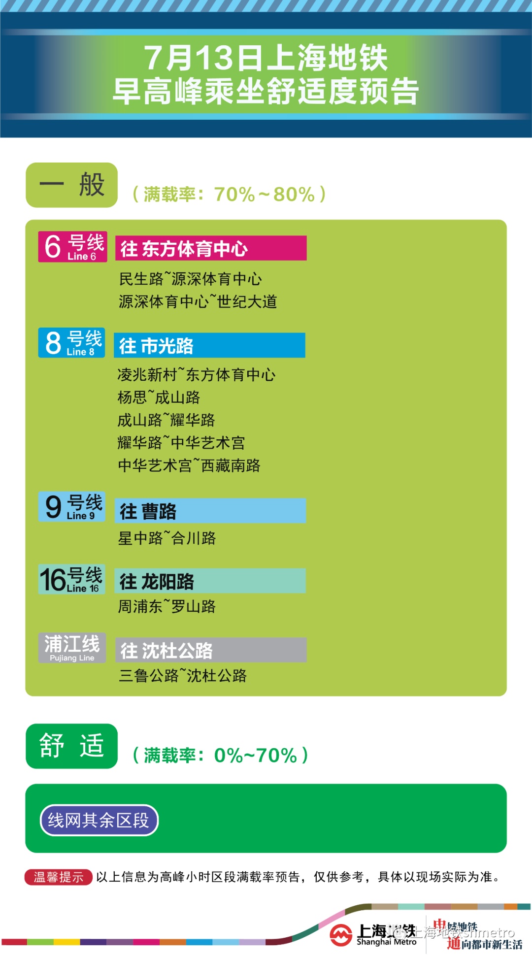 为提升上海地铁早高峰期间出行服务水平,提升乘客乘坐体验,上海地铁向乘客提供乘坐舒适度预告,方便乘客提前做好出行准备。